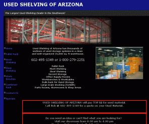 Arizona Directions: From Tucson Intl. Airport take Tucson Blvd. to Valencia Rd., turn left (west), go 1 3/4 miles to Nogales, PALLET & CANTILEVER RACKS & SHELVING Very Large Sel. Heavy Duty Pallet Racking Parts Rack (Some Enclosed) Large Sel. of Control Surface Racks on ... Visit Document